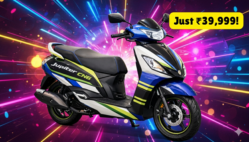 TVS Jupiter CNG 2025 Launched – Dual-Fuel Technology, 84Km/kg Mileage & Eco-Friendly Ride at Just ₹39,999!